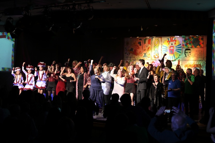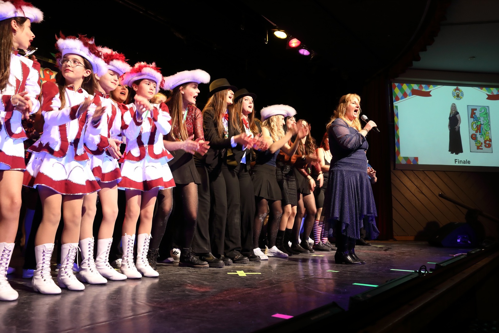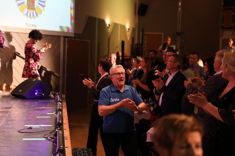 20 - FinaleUnser großes Finale! Am Mikro war wie immer Sylvia, hinter ihr ca. 100 Akteure, die gemeinsam den Abschluss dieses wunderbaren Abends feierten. DANKE an alle Aktiven! DANKE an das tolle Publikum! mit Gaßner Sylvia